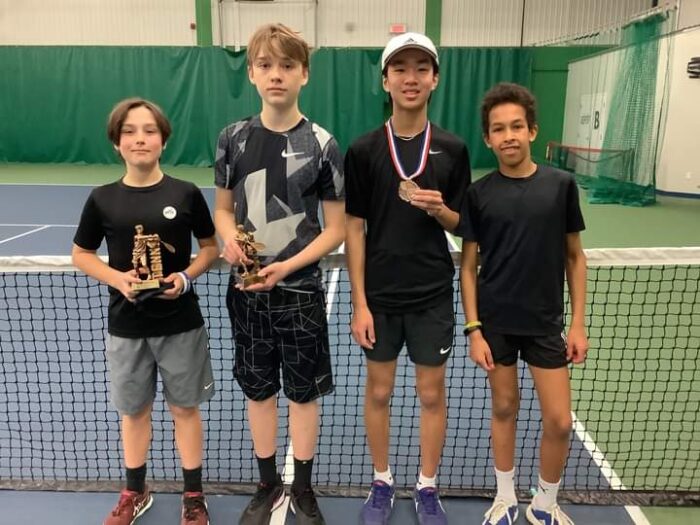 Le weekend dernier s’est tenu un tournoi provincial 14 ans et moins au TIRV. Félicitations à Samao Deschênes de l’ATD qui a remporté la 3e position dans le cadre de ce tournoi! Sur la photo (de gauche à droite) : Léon Payment (1ère position), Maximilian Flick (2e position), Samao Deschênes (3e position) et Thomas Mucyo-François…