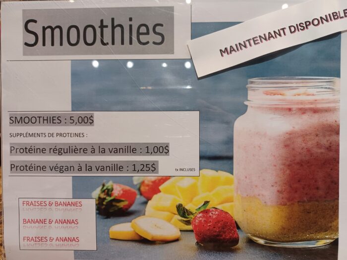 Venez savourer nos délicieux smoothies! Profitez de notre promotion 2 pour 1 du 17 au 21 juin inclusivement. Bonne saison estivale!