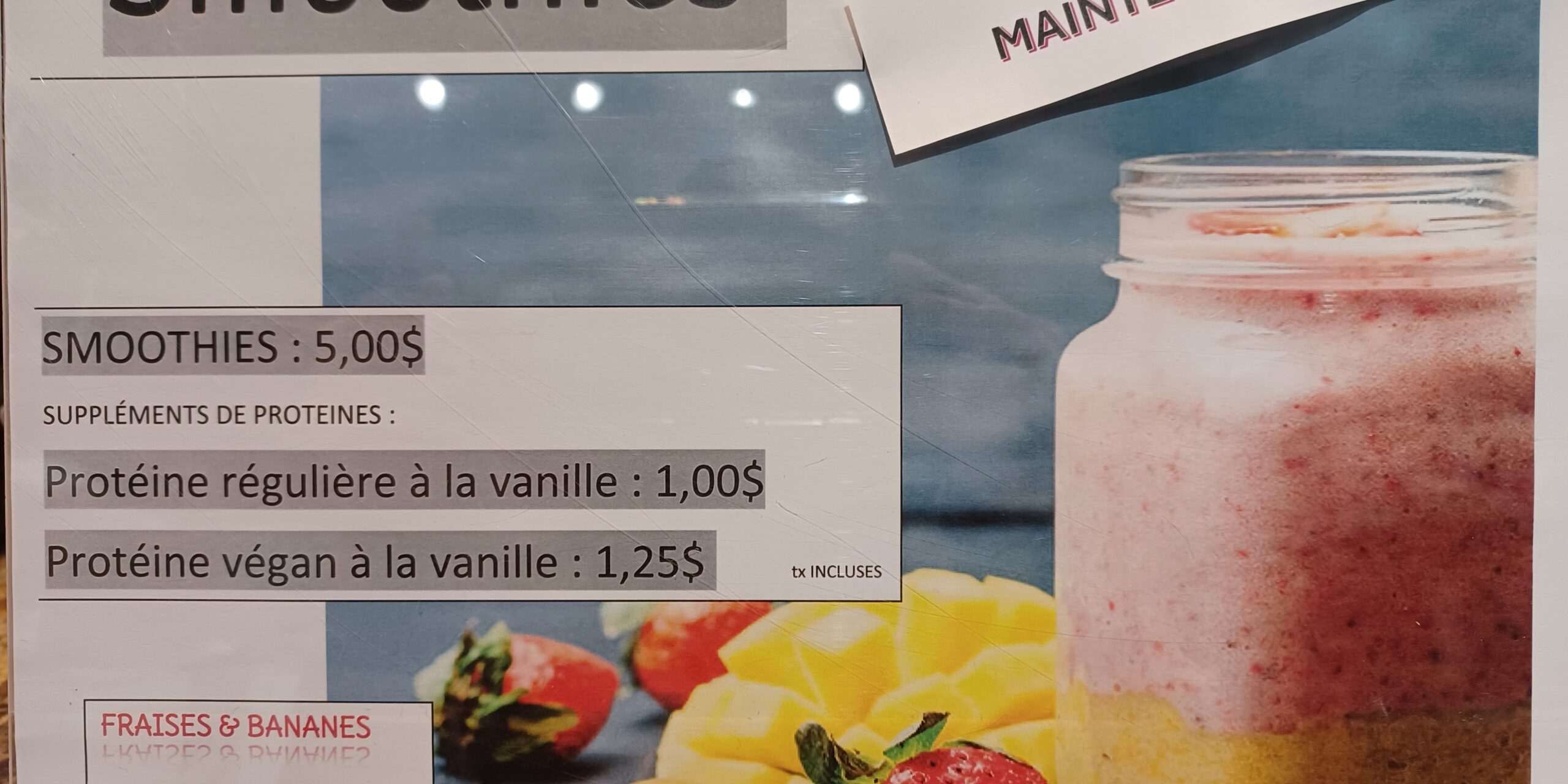 – Supplément de protéines régulières à la vanille : +1,00 $