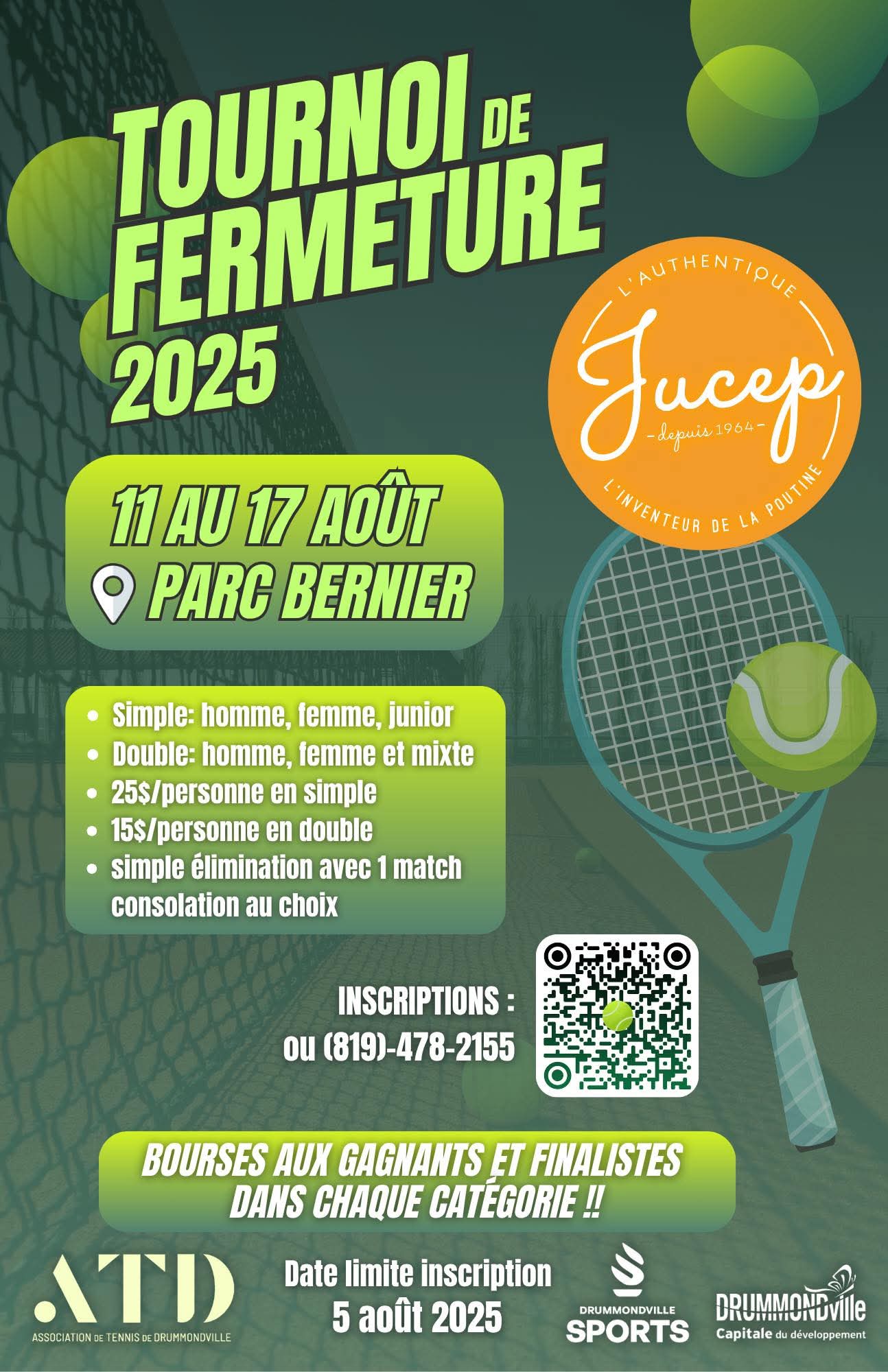 Pour toutes questions, n’hésitez pas à nous contacter : 819 478-2155 ou reception@tennis-drummondville.com